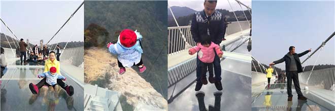 张家界真的太美了,值得一去的。我们一家子9个人,包括2个小孩,刚从张家界玩完回来。特别是在玻璃桥上,几个小孩玩的特别开心。刚开始都不敢往玻璃桥上跳著拍照,后面导游给我们做示范,我们胆子才大了点。瞧,拍了这么多玻璃桥上腾空的美照。